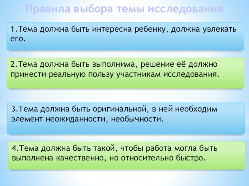 2.Тема должна быть выполнима, решение её должно принести реальную пользу участникам исследования.