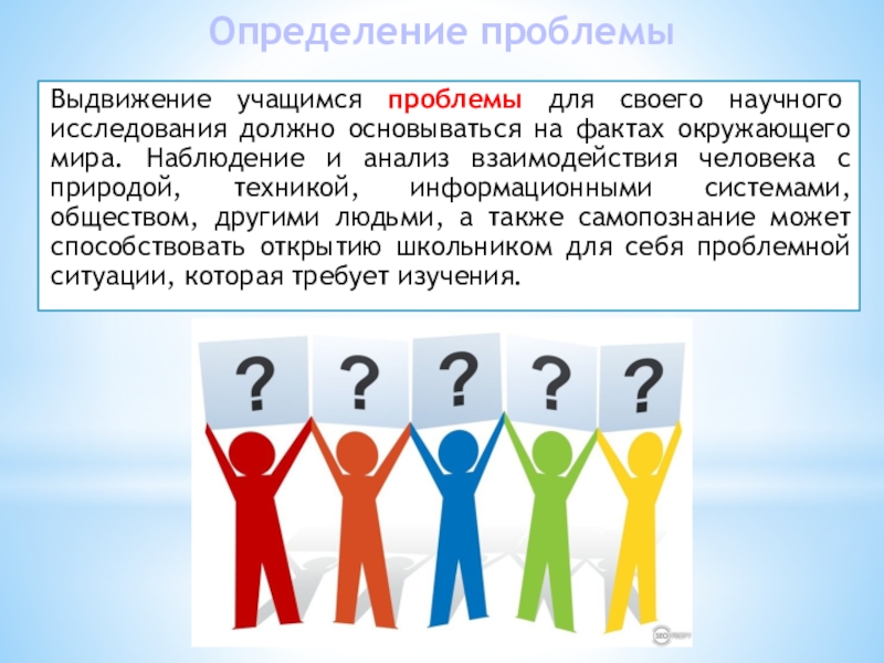 8. Следует учитывать возможный уровень решения проблемы. Проблема должна соответствовать возрастным особенностям детей.