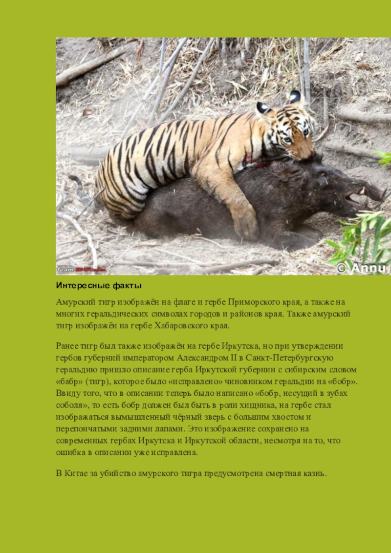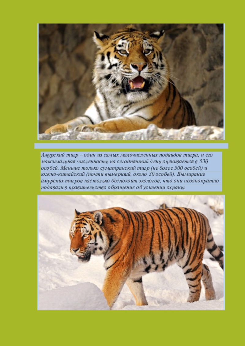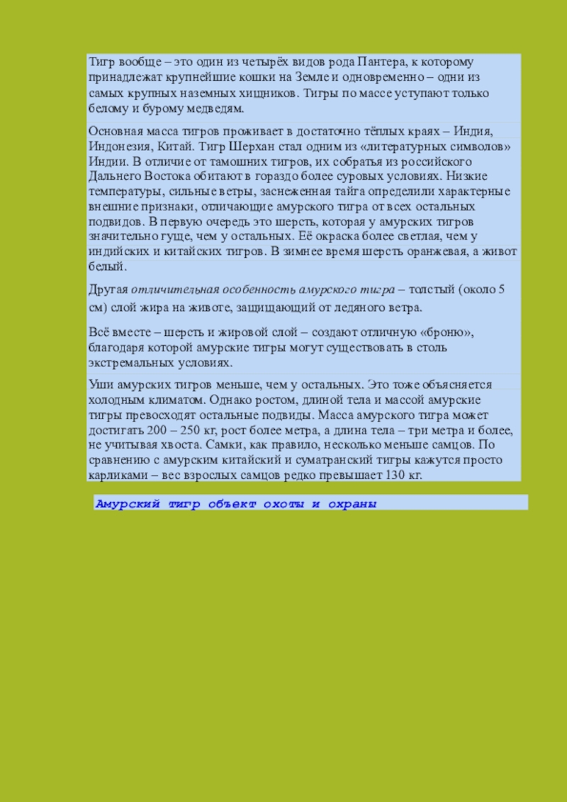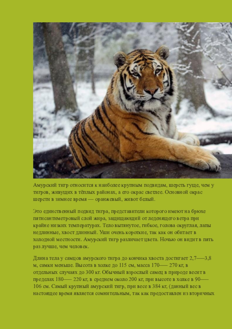 некомфортных условий существования, а из-за деятельности браконьеров. Охотников привлекала прежде всего шкура тигра – пушистая и с красивым рисунком.