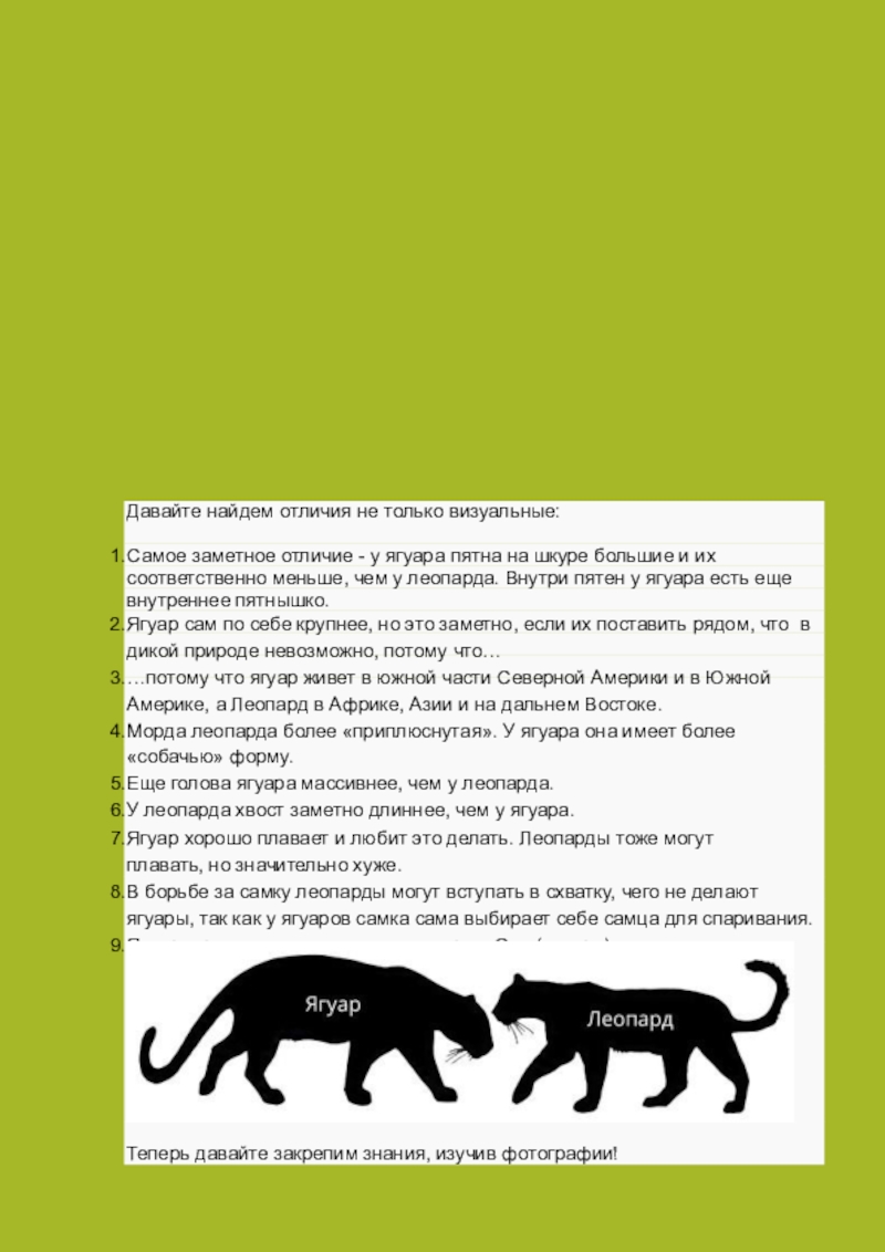 Ягуар сам по себе крупнее, но это заметно, если их поставить рядом, что в дикой природе невозможно, потому что…