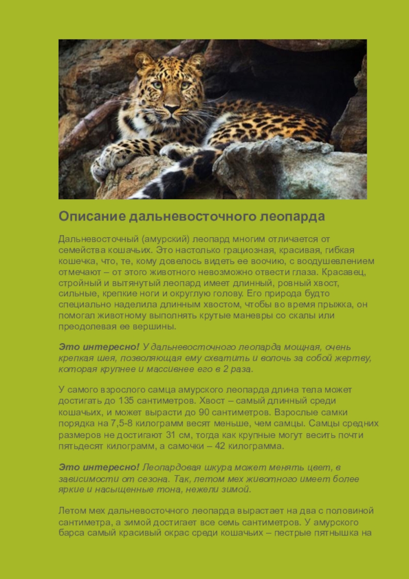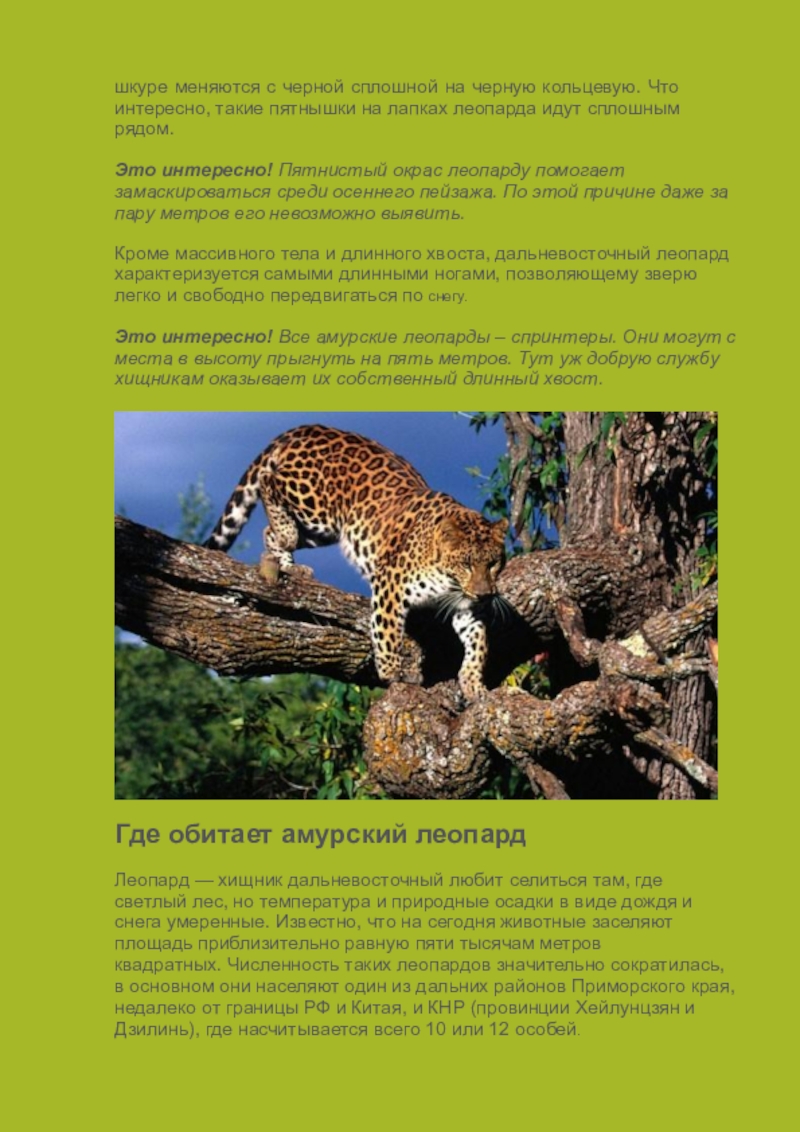живет в Китае. Вот почему подвид леопарда решено было назвать дальневосточным. В зоологии этот подвид больше известен,