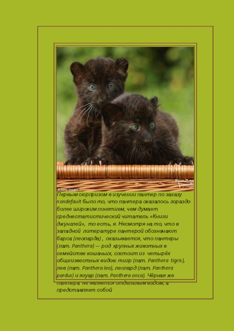 Слайд 34Первым сюрпризом в изучении пантер по заказу nondefault было то, что