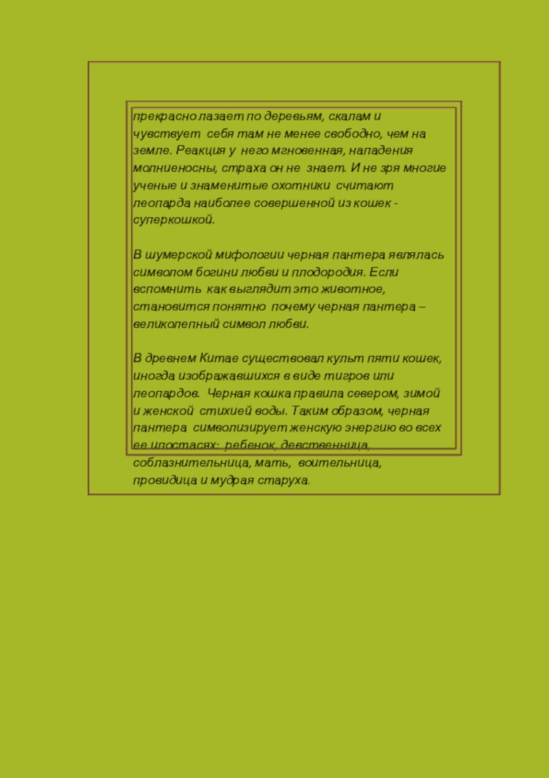 ее ленивую вальяжность. Помня этот образ нетрудно согласиться с тем, что черная пантера неспроста являлась в шумерской мифологии символом богини любви и плодородия.