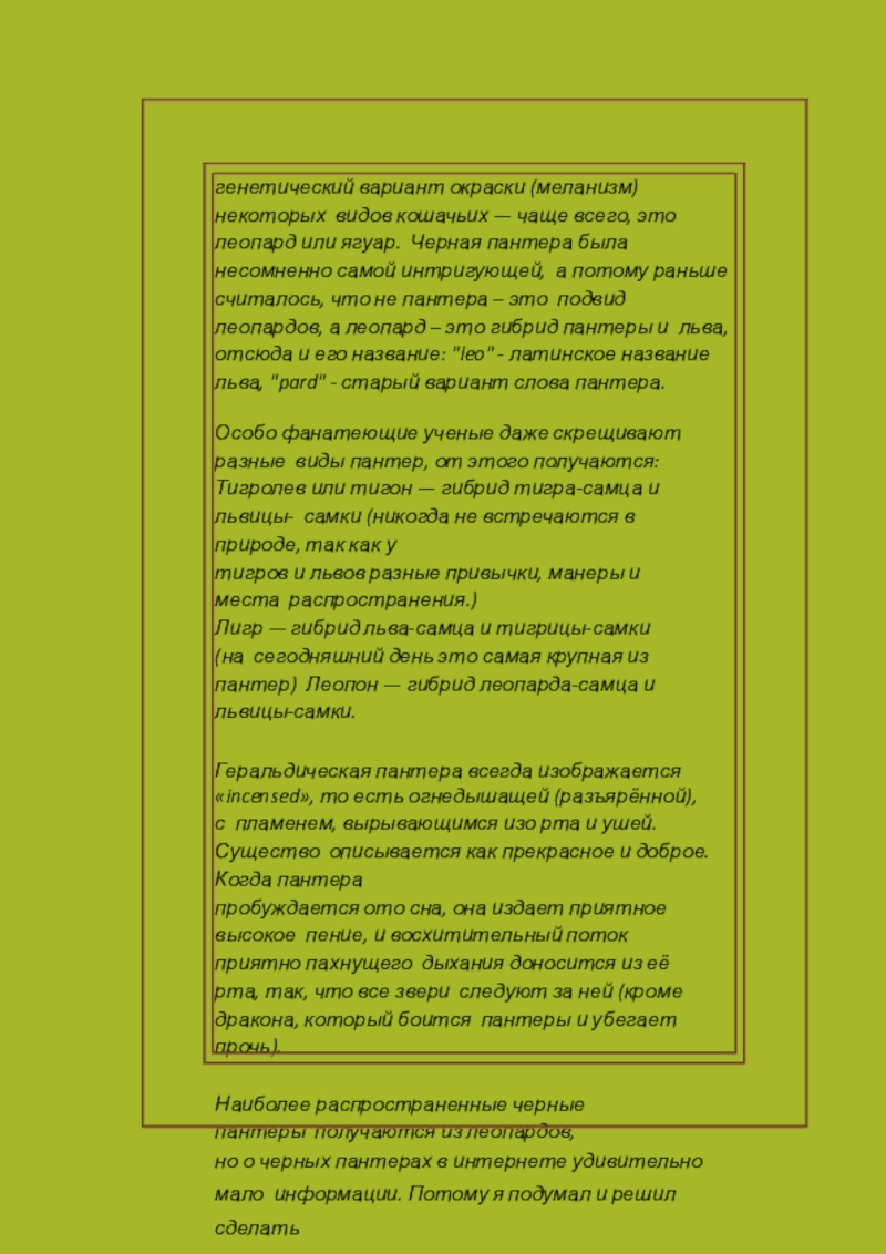 но о черных пантерах в интернете удивительно мало информации. Потому я подумал и решил сделать