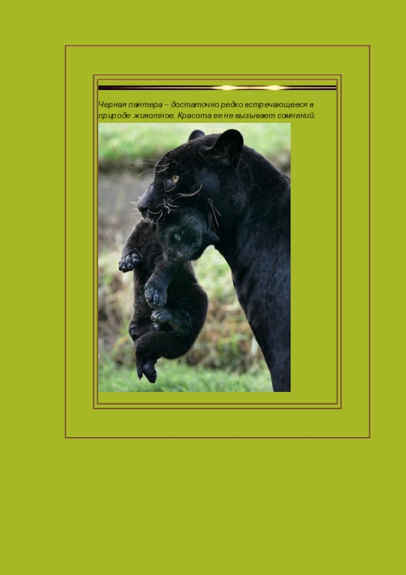 Слайд 30Черная пантера – достаточно редко встречающееся в природе животное. Красота ее