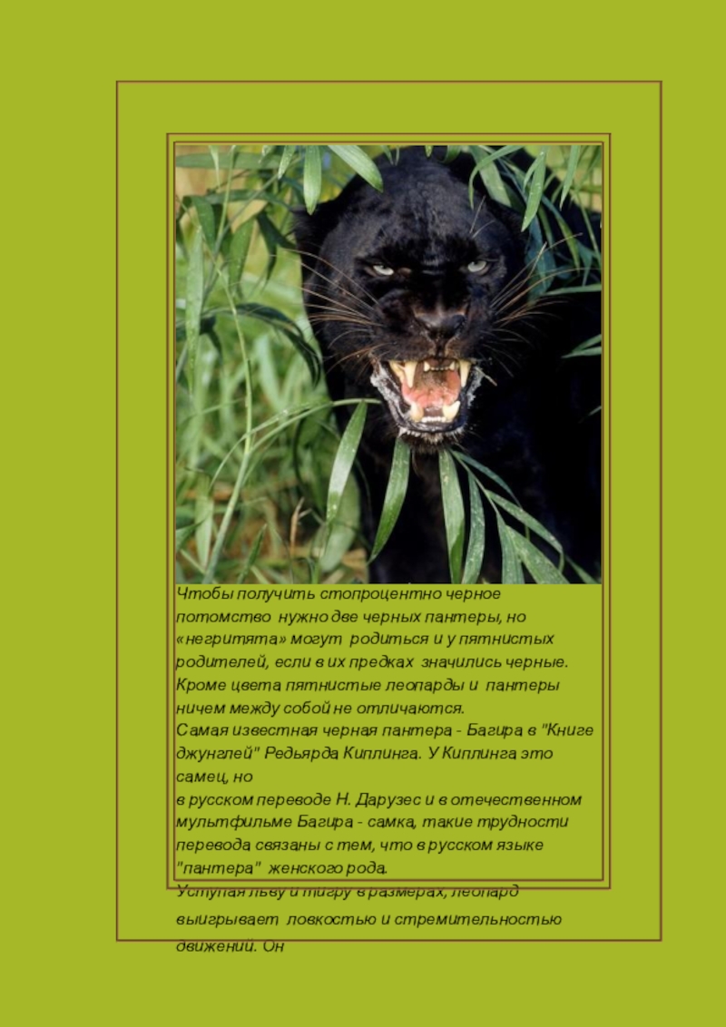 Слайд 31Чёрная пантера не является отдельным видом, а представляет собой генетический вариант