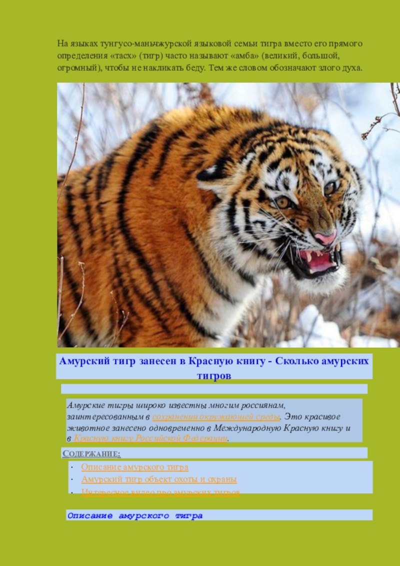 (тигр) часто называют «амба» (великий, большой, огромный), чтобы не накликать беду. Тем же словом обозначают злого духа.