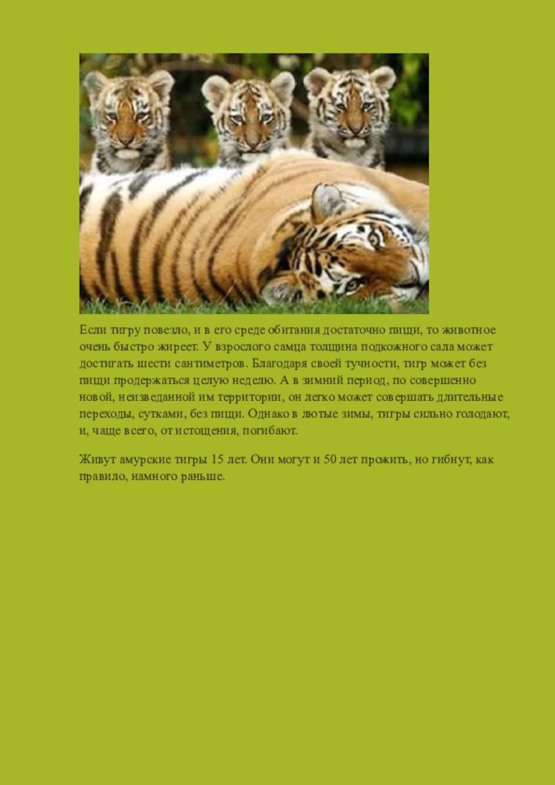 Слайд 7Если тигру повезло, и в его среде обитания достаточно пищи, то