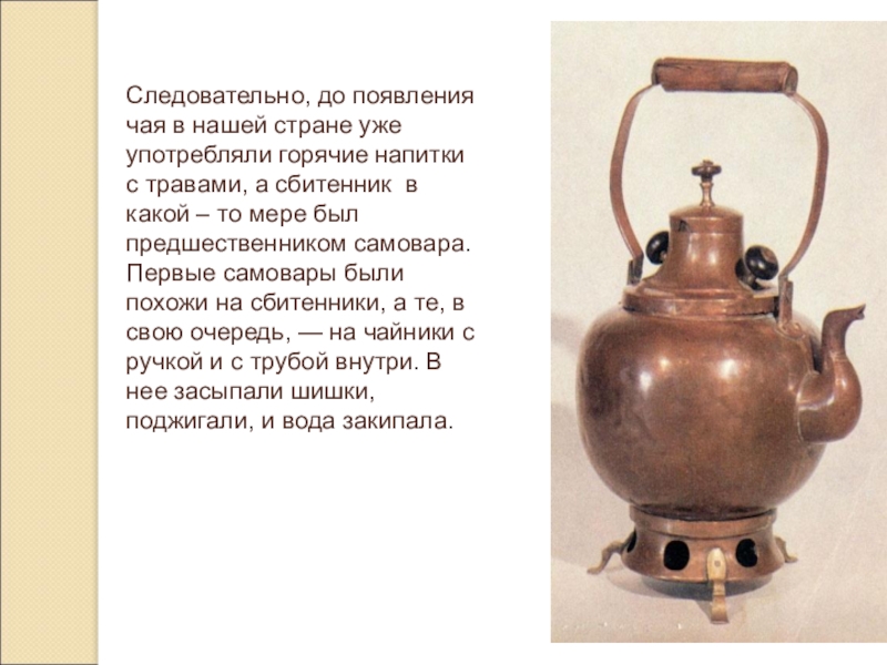Упоминание о сбитне есть в документах XII в. Тогда он был известен под названием перевар, или взвар.
