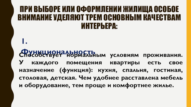 Способствует нормальным условиям проживания. У каждого помещения квартиры есть свое назначение (функция): кухня, спальня, гостиная, столовая, детская. Чем удобнее расставлена мебель и оборудование, тем проще и комфортнее жилье.