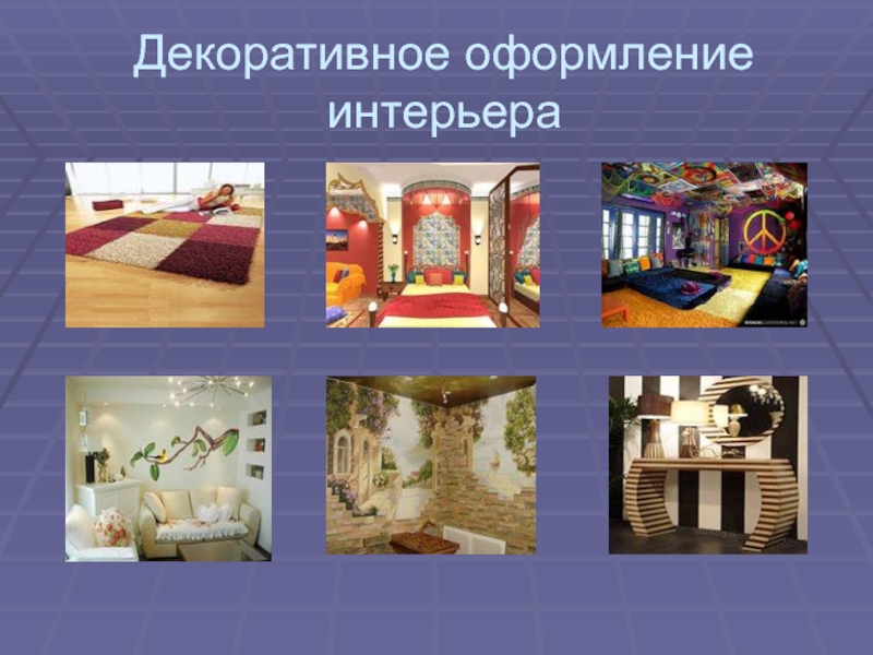 мебели, декоративного помещений, отделки поверхностей, цветового решения оформления.