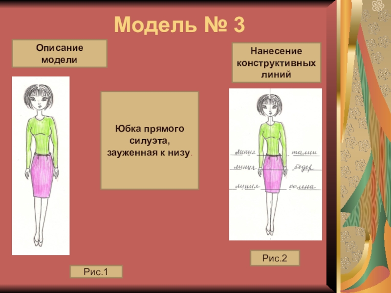 Юбка прямого силуэта, зауженная к низу.