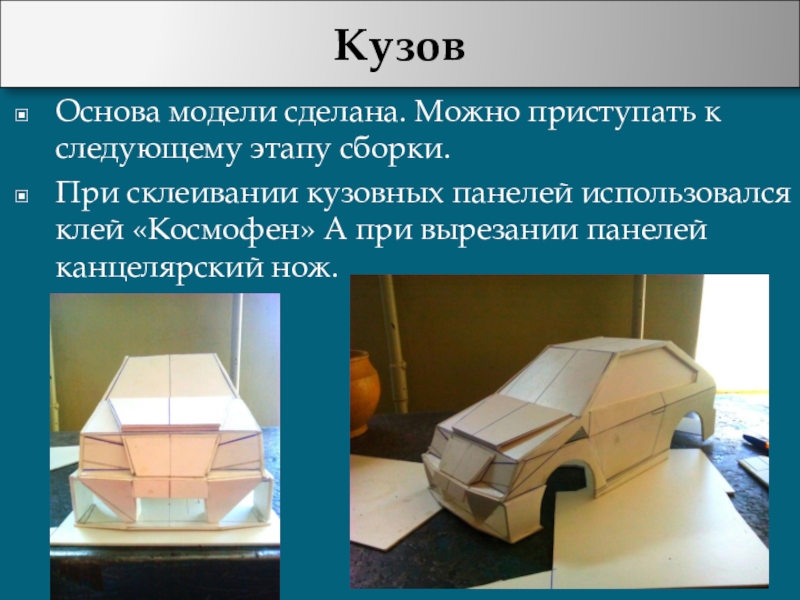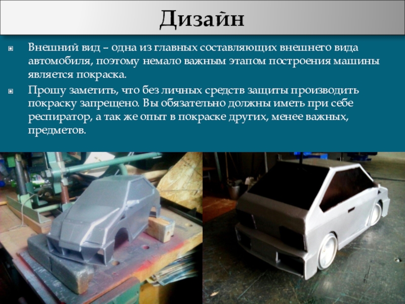 с чертежами и конструировании с целью создания похожей модели машины. С учётом её геометрических особенностей.
