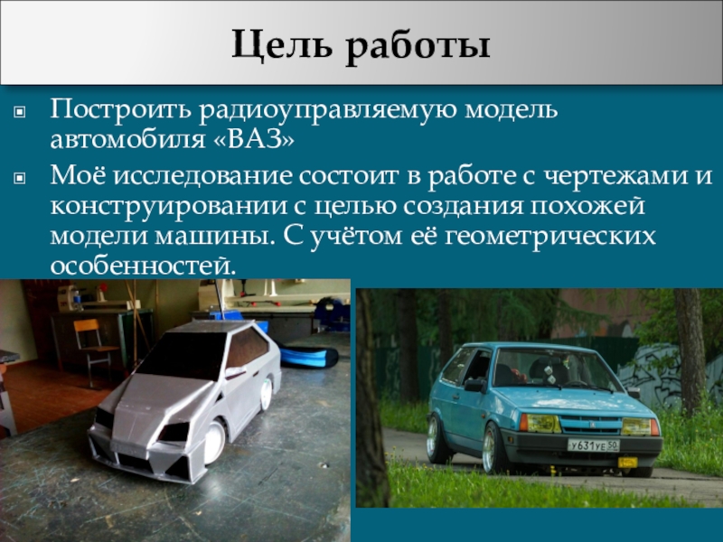 Построить радиоуправляемую модель автомобиля «ВАЗ»