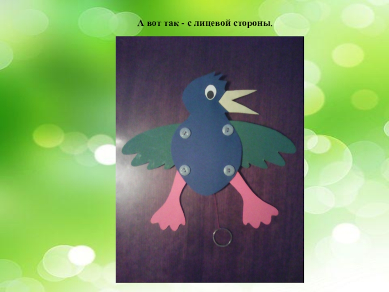 Слайд 11Вот как должна выглядеть получившаяся игрушка - дергунчик с изнанки.