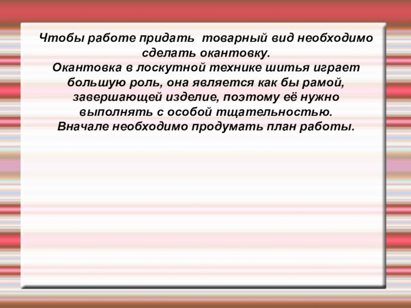 Слайд 26Чтобы работе придать товарный вид необходимо сделать окантовку.