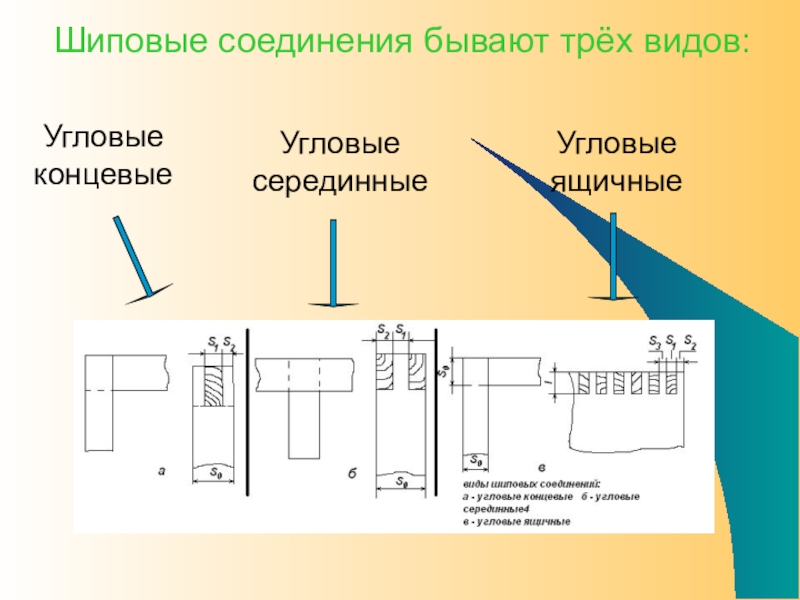 Слайд 6Шиповые соединения бывают трёх видов:
