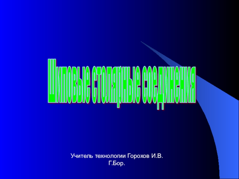 Шиповые столярные соединения Учитель технологии Горохов И.В.Г.Бор.