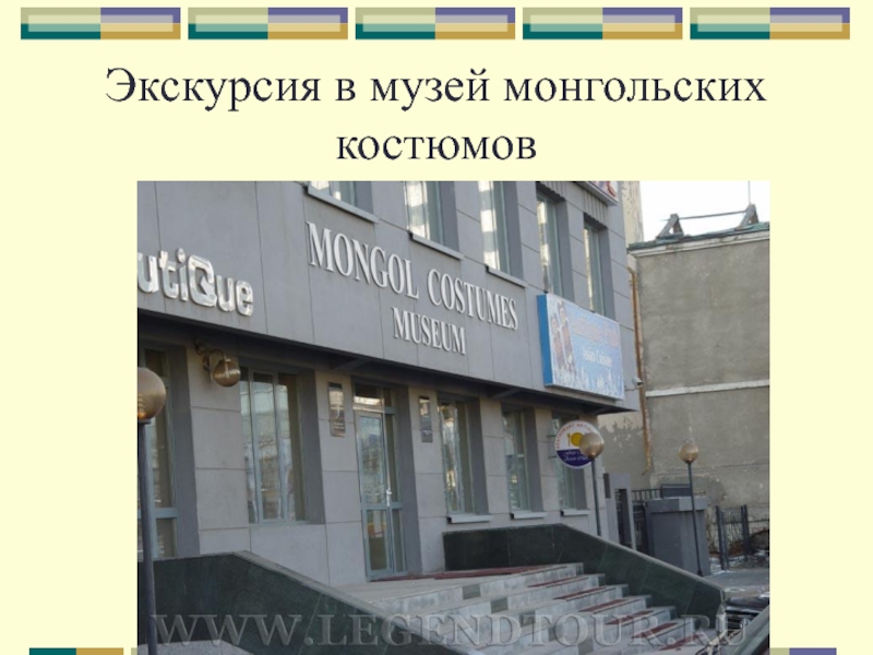 Слайд 16Музей национальных монгольских костюмов расположен рядом с центральной площадью Улан-Батора. Представлены