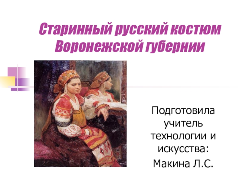 Слайд 4Южный тип русского костюма: Воронежской, Курской, Белгородской губерний.