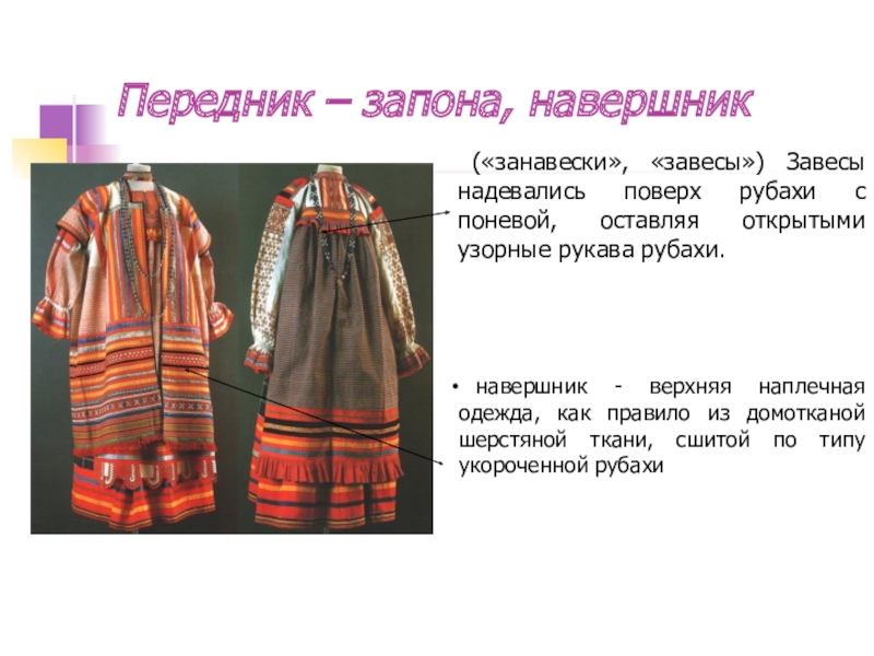 («занавески», «завесы») Завесы надевались поверх рубахи с