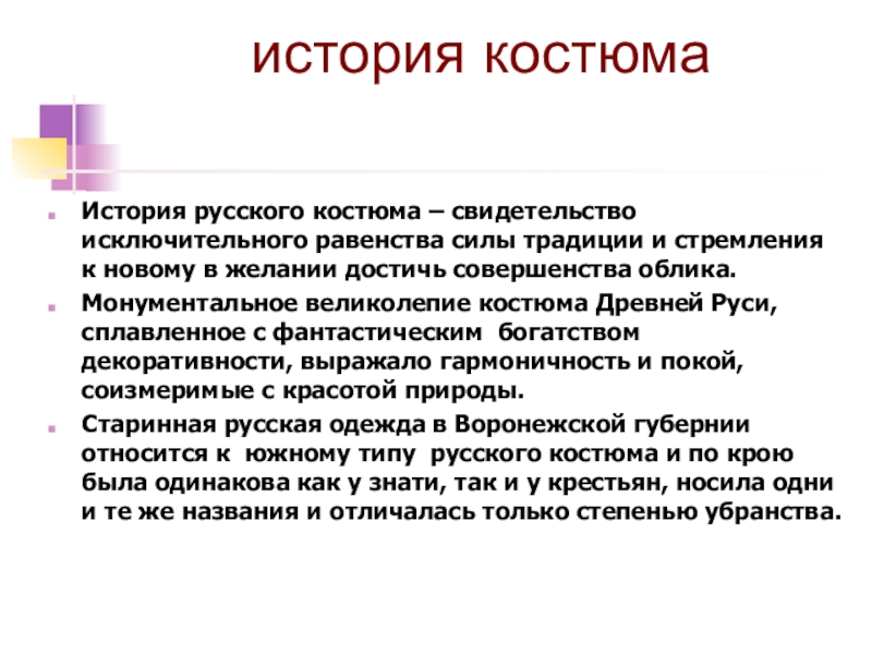 История русского костюма – свидетельство исключительного равенства силы традиции и