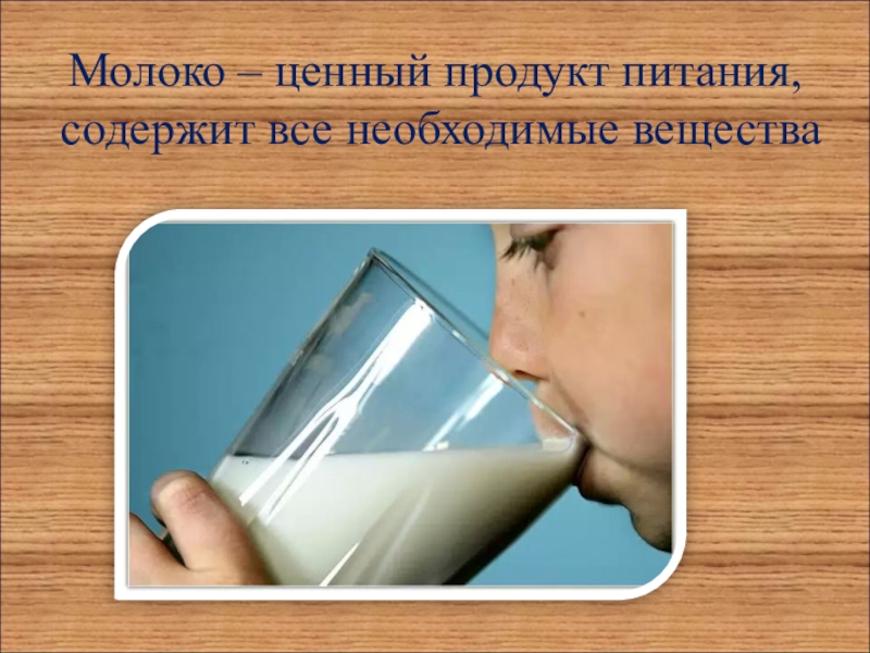 Слайд 2Молоко – ценный продукт питания, содержит все необходимые вещества