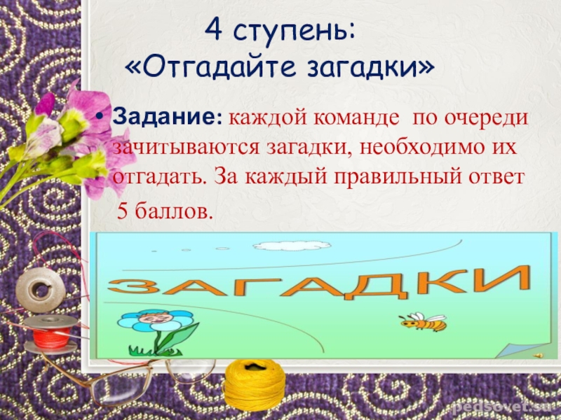 Слайд 8 4 ступень: «Отгадайте загадки»