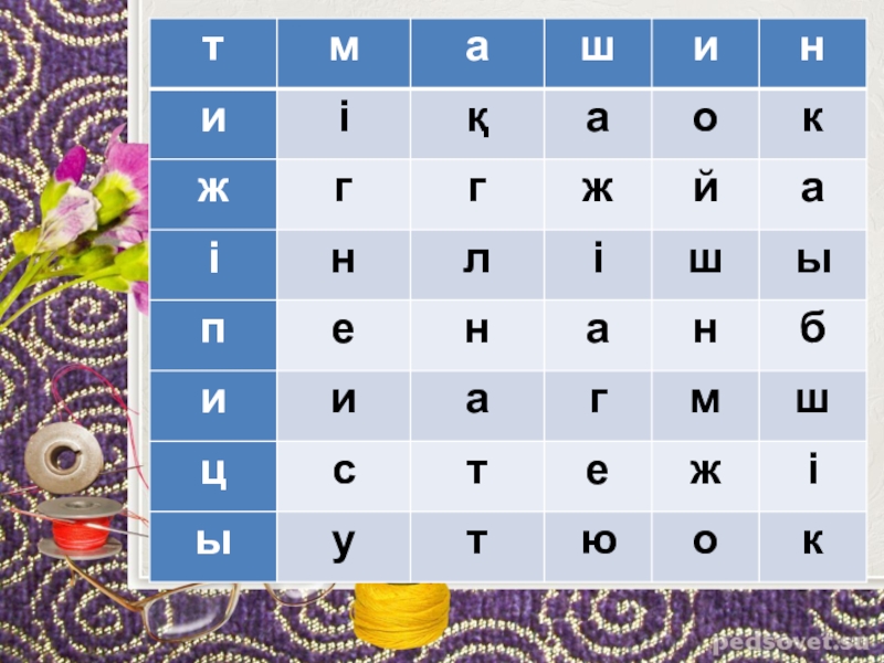 из букв составить слова, учащиеся должны угадать, какие слова зашифрованы. Составленные слова разложить на столе. За каждый правильный ответ – 5 баллов.