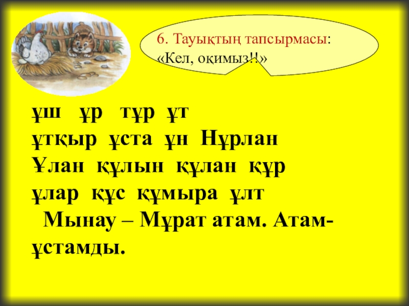 6. Тауықтың тапсырмасы: «Кел, оқимыз!!»