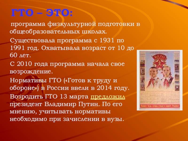 Презентация, доклад на тему ; ГТО