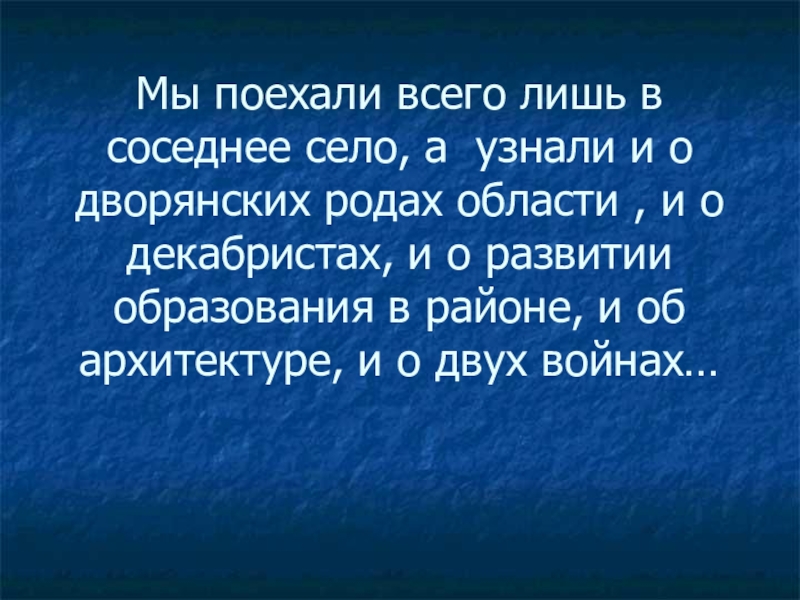 Слайд 71Мы поехали всего лишь в соседнее село, а узнали и о