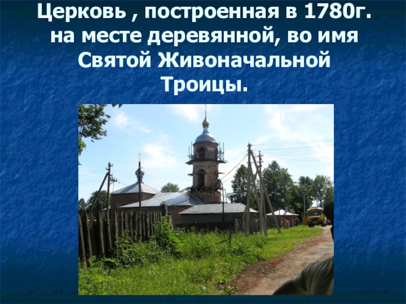Слайд 33Церковь , построенная в 1780г. на месте деревянной, во имя Святой