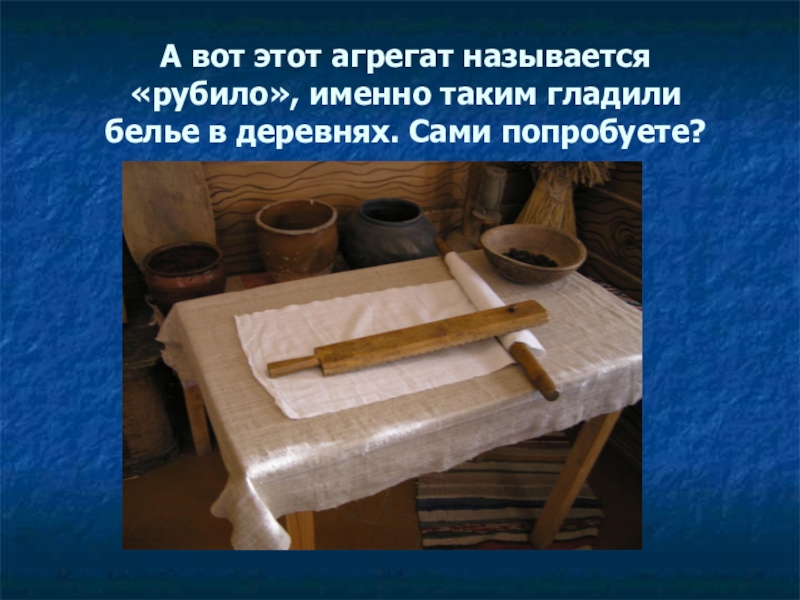 Слайд 26А вот этот агрегат называется «рубило», именно таким гладили белье в