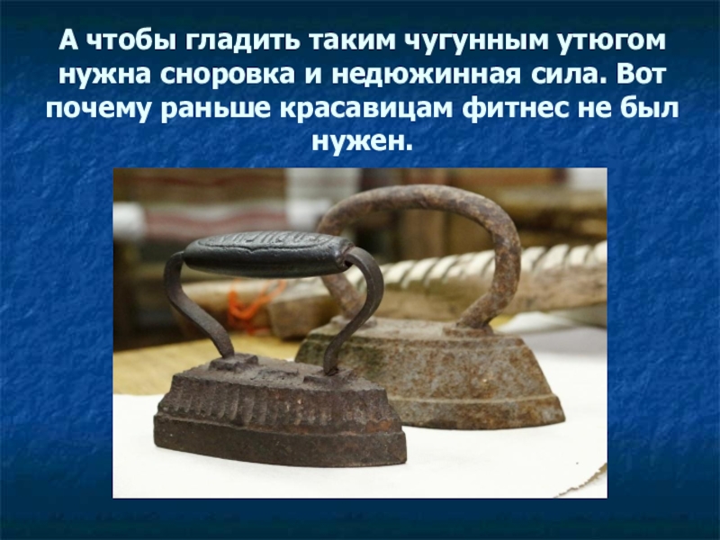 Слайд 27А чтобы гладить таким чугунным утюгом нужна сноровка и недюжинная сила.