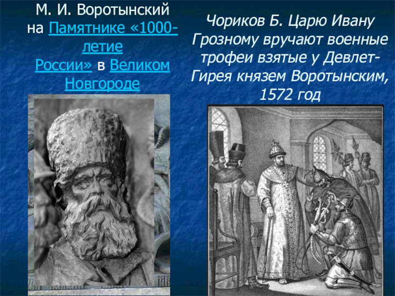Слайд 9М. И. Воротынский на Памятнике «1000-летие России» в Великом Новгороде