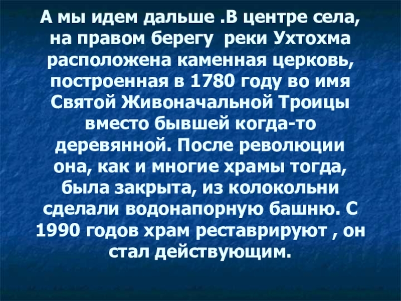 Слайд 32А мы идем дальше .В центре села, на правом берегу реки