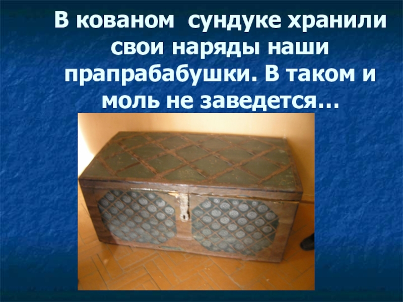 Слайд 25В кованом сундуке хранили свои наряды наши прапрабабушки. В таком и