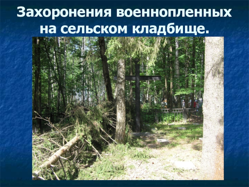 Слайд 43Захоронения военнопленных на сельском кладбище.