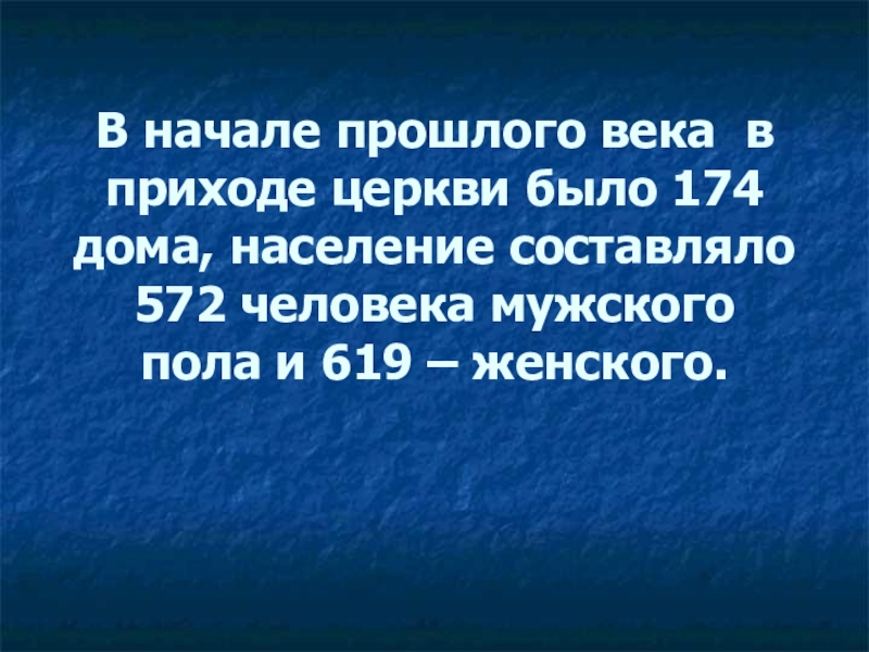 Слайд 34В начале прошлого века в приходе церкви было 174 дома, население