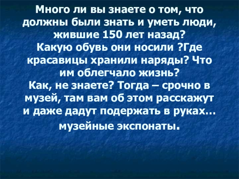 Как, не знаете? Тогда – срочно в музей, там вам об этом расскажут и даже дадут подержать в руках… музейные экспонаты.