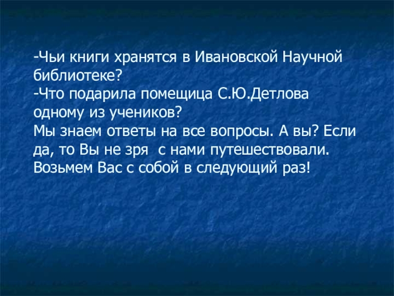 Слайд 76-Чьи книги хранятся в Ивановской Научной библиотеке?