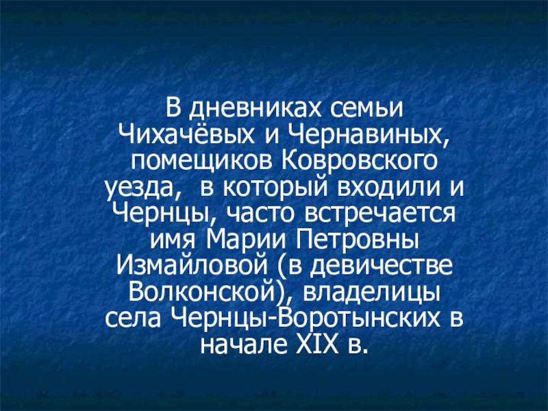 Слайд 17В дневниках семьи Чихачёвых и Чернавиных, помещиков Ковровского уезда, в который