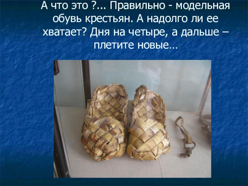 Слайд 28А что это ?... Правильно - модельная обувь крестьян. А надолго