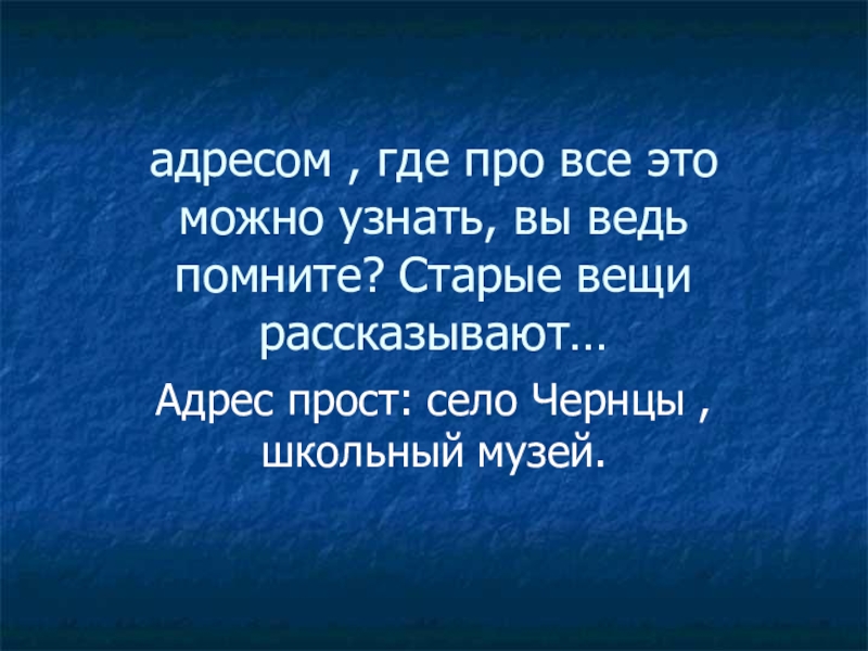 Адрес прост: село Чернцы , школьный музей.
