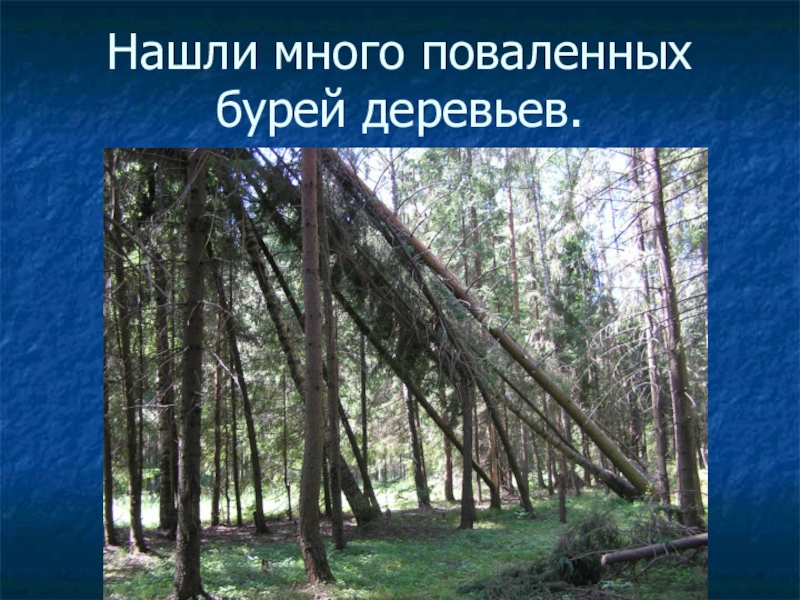 Слайд 62Нашли много поваленных бурей деревьев.