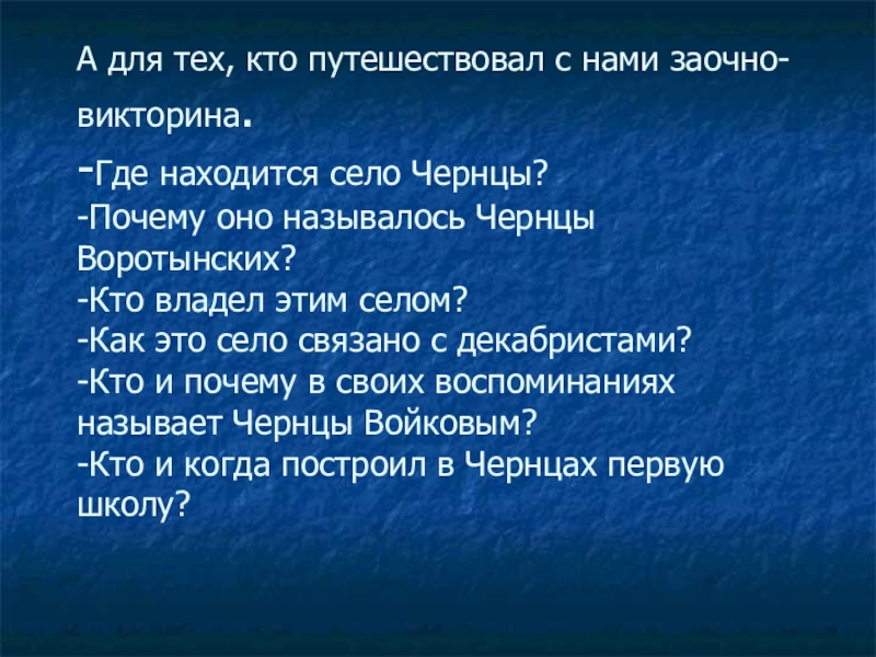 Слайд 74А для тех, кто путешествовал с нами заочно- викторина.