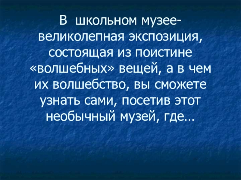 Слайд 22В школьном музее- великолепная экспозиция, состоящая из поистине«волшебных» вещей, а в