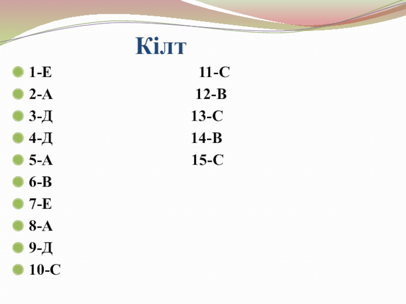 Слайд 151.Жинақтық сан есімді табыңыз:А) Он бес В) Бестік