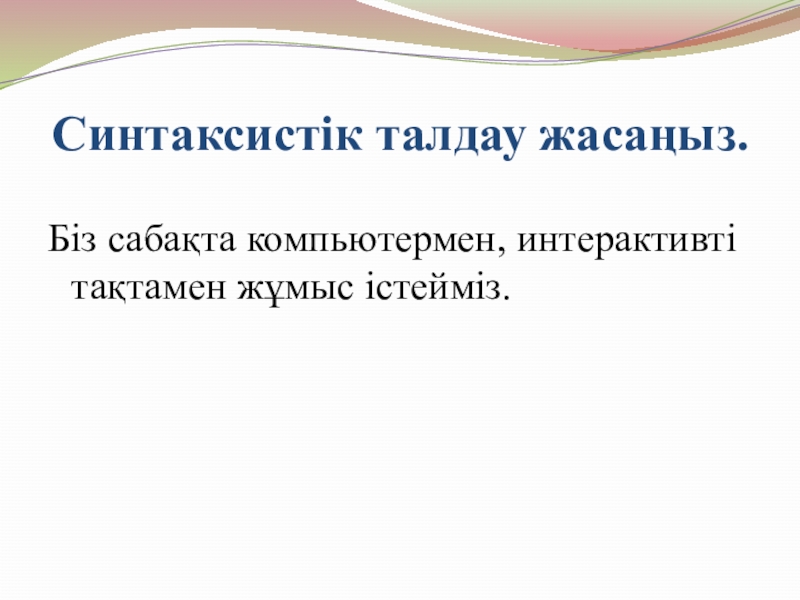 Синтаксистік талдау жасаңыз.Біз сабақта компьютермен, интерактивті тақтамен жұмыс істейміз.